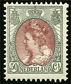 74, 50 cent bronsgroen en bruinrood, postfris prachtex. € 550