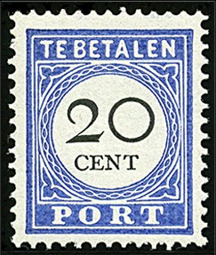 25a, 20 cent donkerblauw type III, postfris prachtex. € 275