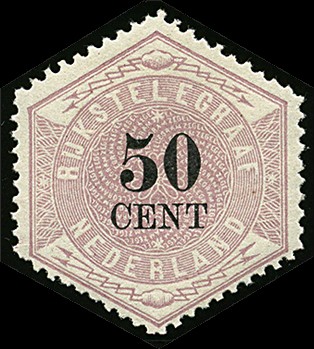 9, 50 cent lila en zwart, ongebr. prachtex. met originele gom en klein papierrestje € 450
