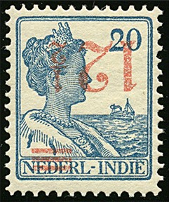 171f, 12½ ct. op 20 ct. blauw, Hulpuitgifte 1930 met foutdruk 'opdruk kopstaand', postfris luxe ex. met keur Hekker en cert. Muis (2008). Oplage 100 stuks, slechts enkele ex. postfris bekend. Zeldzaam ! Cat.-notering voor * = € 450