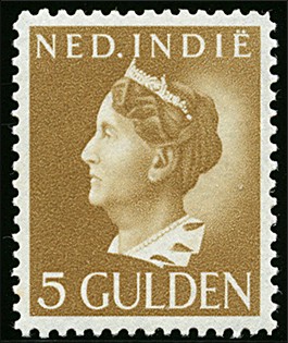 287, 5 Gulden geelbruin, postfris prachtex. € 400