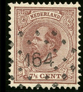 Puntstempel 164 = Makkum op 7½c nr. 20. Prachtex. met bijzonder mooie afst. € 150