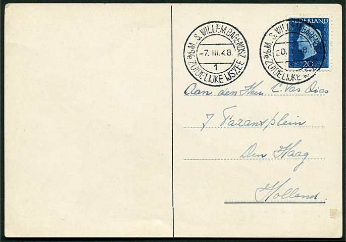 Scheepspost. Walvisvaarder M.S. Willem Barendsz. Drie poststukken uit 1947, 1948 en 1964 waarop verschillende scheepsstempels