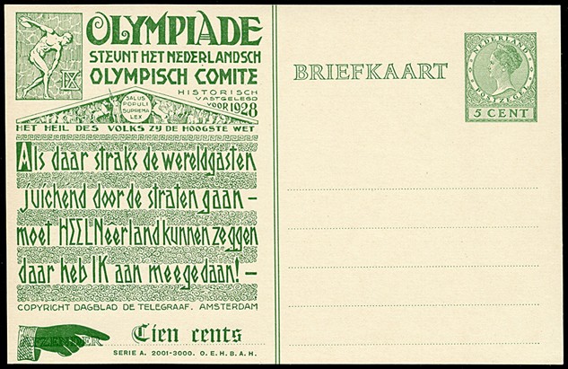 Particulier bedrukte bk. Olympiade 1928, OL11 (Serie A. 2001-3000.). Ongebruikte prachtkaart
