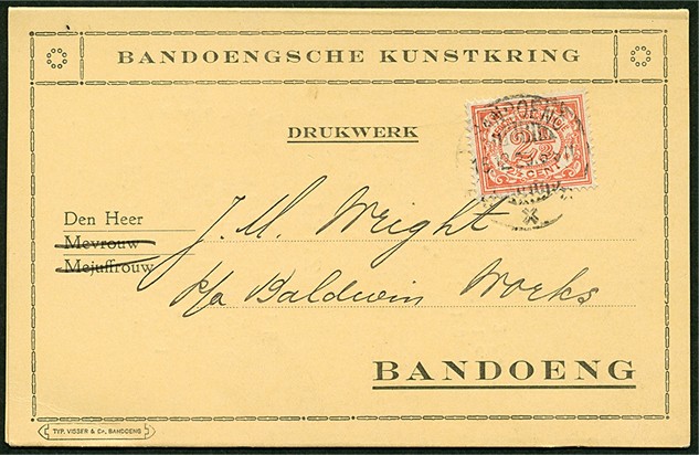 Drie met 2½c gefr. drukwerken uit 1923 van de Bandoengsche Kunstkring