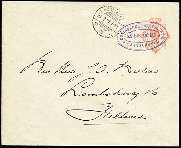 Env. G47 mooi afgest. met KPM-ovaalstempel 'S.S. BINTOEHAN' via Pontianak 29-3-1928 naar Weltevreden 2-4