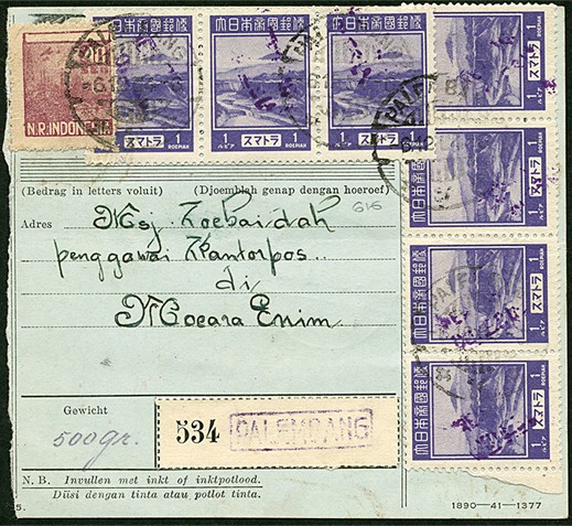 0133 en 54v-97 (7x) op adreskaart van Palembang 6.12.4.6. naar Moearaenim 9.12.4.6