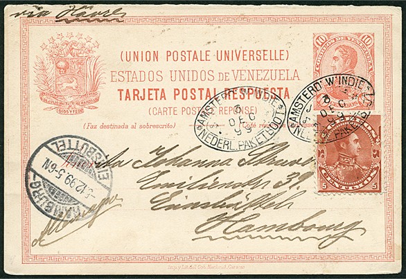 Drie verschillende postwaardestukken uit Haïti 1899-1909, afgest. met ovaal KWIM-stempel