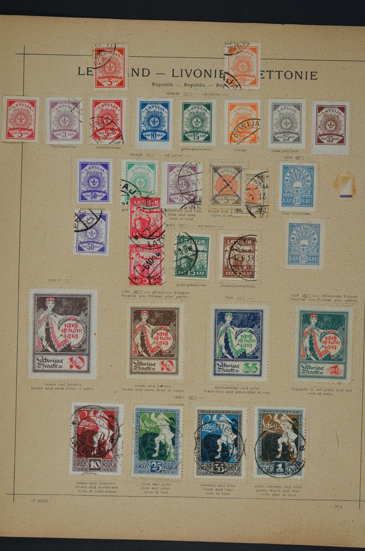 BALTISCHE STATEN 1918-1938, o/* verzameling met betere nrs. o.a. Letland 190/92 A en B, 225/227A, Litouwen 421/24 op brief, etc. (enkele zegels vastgeplakt)