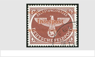 DUITSE VELDPOST-KRETA, Zulassungsmarke Mi.nr.2A met oranjerode opdruk en Veldpoststempel, gesigneerd H.B. Zierer en Pickenpack en certificaat Zierer (1965). Volgens Michel betreft het hier een proef. Zeldzaam !