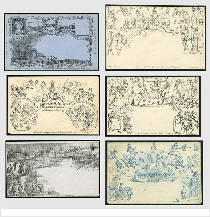 Collection of Mulready caricatures (e.g. Linton and Southgate), Political and Valentine env., Ocean Penny propaganda env., etc., in total 16 env. all unused. Nice lot