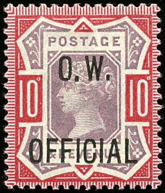 S.G.O35, 10 Pence dull purple and carmine, very fine unused with tiny trace of hinge, well centered and signed Pfenniger. A beautiful stamp, £.6750