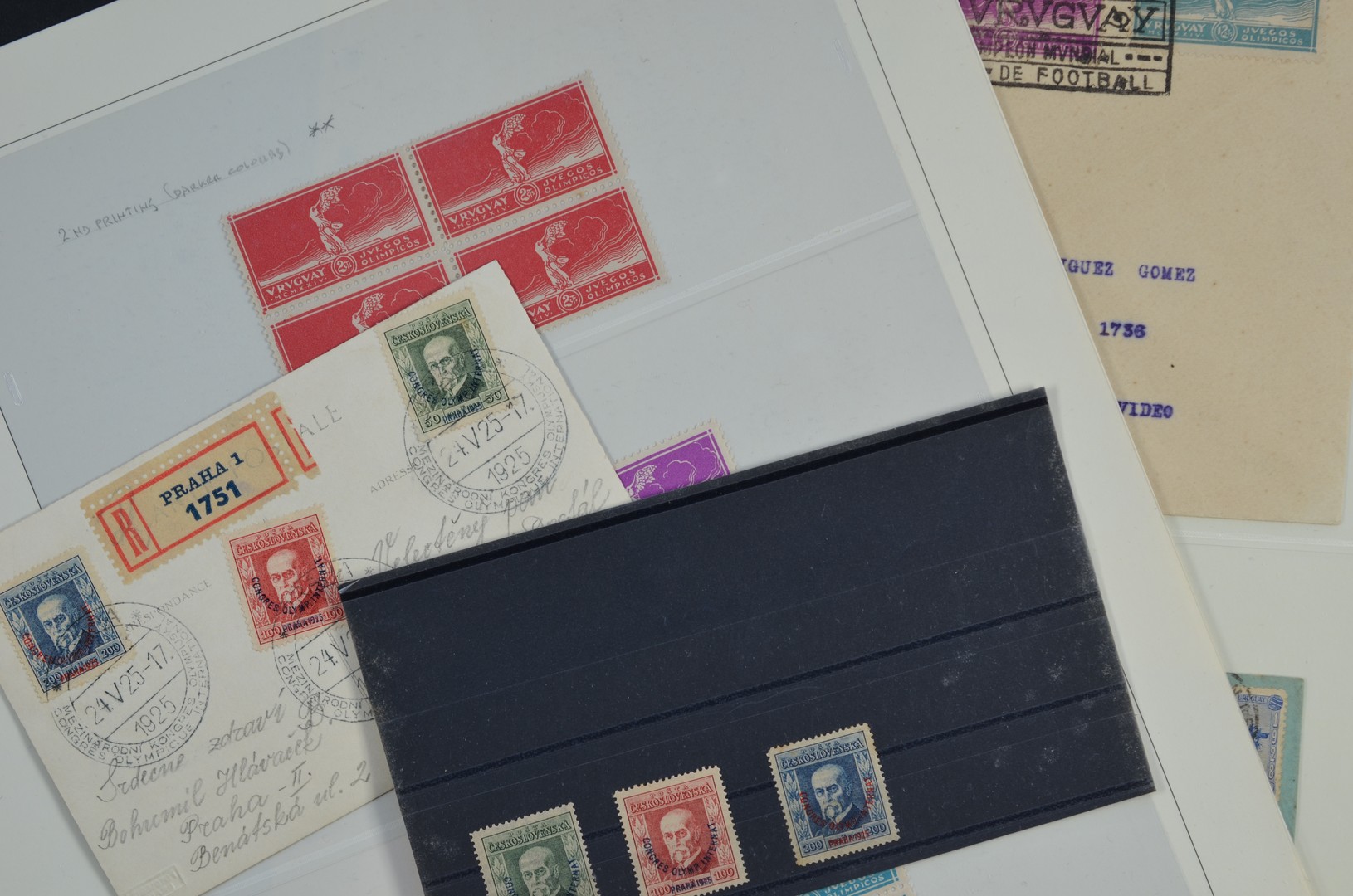 OLYMPISCHE SPELEN. Tsjechoslowakije 1925 (Olympisch Congres, w.o. Mi.209/11 op R-bk) en Uruguay 1924/28 **/o (Olympische Spelen voetbal) incl. poststukken