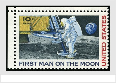 USA, Scott C76a, 10 cents 'First man on the moon' met variëteit: rose-rood ontbreekt (Litho), postfris prachtex. met cert. Diena (1979) $.500