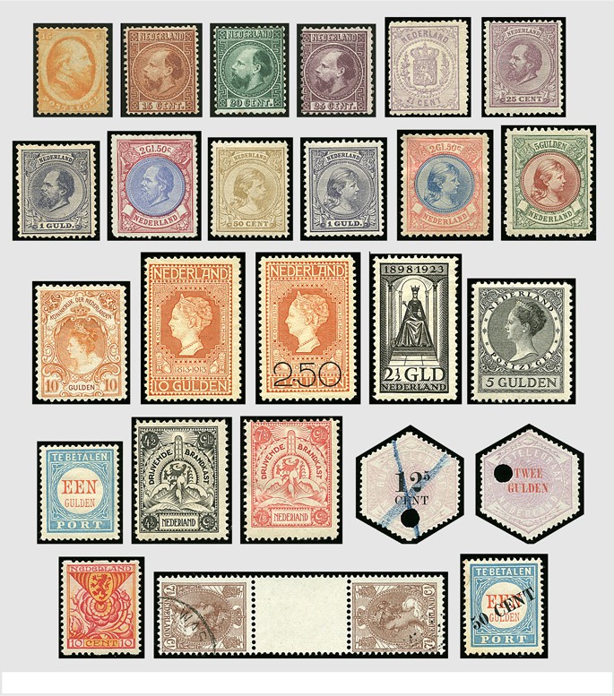 1852-1964, hoofdzakelijk ongebruikte verzameling in Importa album met een keur aan betere nrs. en series zoals 4/6 *, 7/11 (*), 18 *, 26 (*), 28 *, 29 (*), 43/44 *, 47/48 *, 49 *, 61b/c, 77/80 *, 97/101 *, 101/05 *, 130/31 *, 149/65 *, LP.12/13 **, Brandkast 1/7 *, Internering 1/2 *, Postbewijs 1/7 o, Telegram 1/6 en 8/12, tevens een leuke afdeling Roltanding en Port. Een mooie verzameling met een enorme cataloguswaarde !