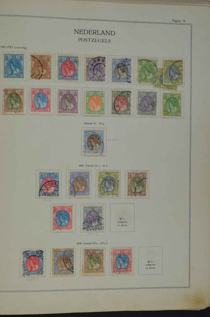 Partij o/* op albumbladen, met tandingvariëteiten tot ca.1940, diverse betere nrs. o.a. 47/48, 61c, 130, goed roltanding en port met typen