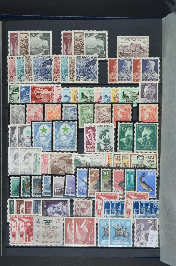 JOEGOSLAVIË, postfrisse winkelvoorraad in 2 insteekboeken met betere ex. en series o.a. 228/37, 730 (2), 738/49, 776/887 (2), blok 4 A/B (2), blok5 (2), etc., etc.