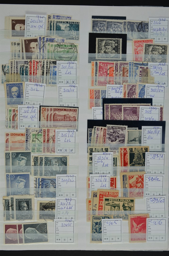 POLEN 1915-2007, o/*/**, mooie voorraadstock met diverse betere nrs. zoals 45, 49/53, 254/55, blok 5/6, etc., in 2 dikke boeken