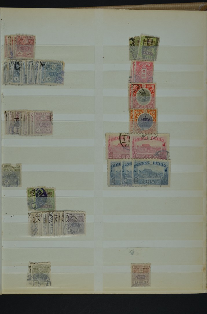 JAPAN, voorraadstock met doubletten in insteekboek alsmede iets gebieden en poststukken, leuk voor de stempelverzamelaar.